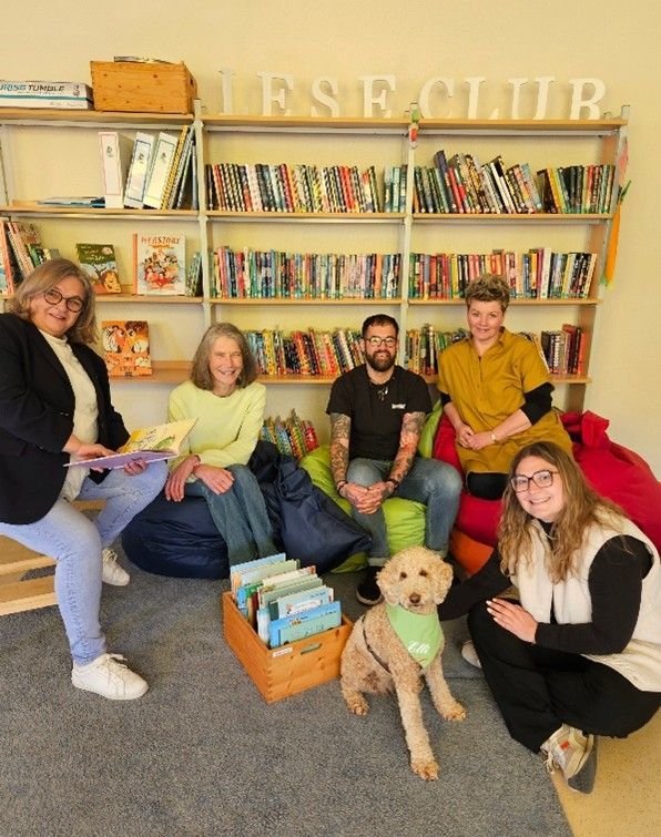 Lesehündin Elli bereichert ab sofort das Team der Schulsozialarbeit. Gemeinsam mit Leah Grewe wird Elli als Lesehündin eingesetzt. Der Goldendoodle hört wertfrei zu und ermöglicht den Kindern positive Verknüpfungen mit der Schule und dem Erwerb der Lesekompetenz. Gleichzeitig hilft sie dabei, sich auf das Lesen zu konzentrieren und die Umgebung für einen Moment auszublenden. Begleitet wird die Hündin stets von Schulsozialarbeiterin Leah Grewe, die die Fortbildung "Lesehund" besucht und erfolgreich abgeschlossen hat.