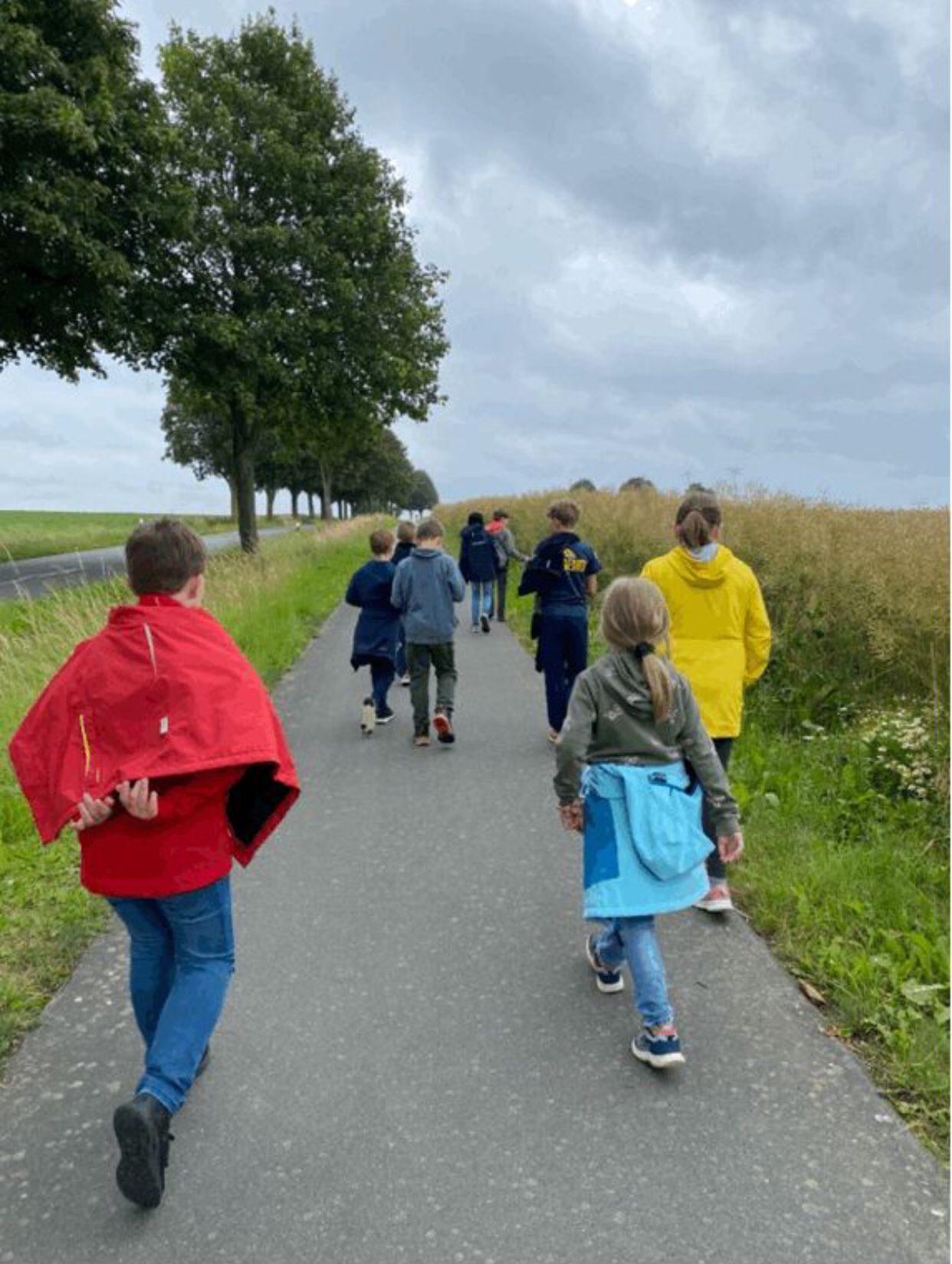 Bei einem Unterrichtsgang durch die beiden Dörfer Harth und Weiberg erlebten die Kinder der Klasse 3a am Dienstag, 02.07.2024 „Geschichte und Geschichten“ passend zu verschiedenen Themen des Sachunterrichtes. Wir schauten uns die Orte der Vorgängersiedlungen beider Dörfer an (Groten Swinefelde – Weiberg, Hepernfeld – Harth) und besuchten die Weiberger Kirche St. Birgitta (Thema im Unterricht: Unser Ort).