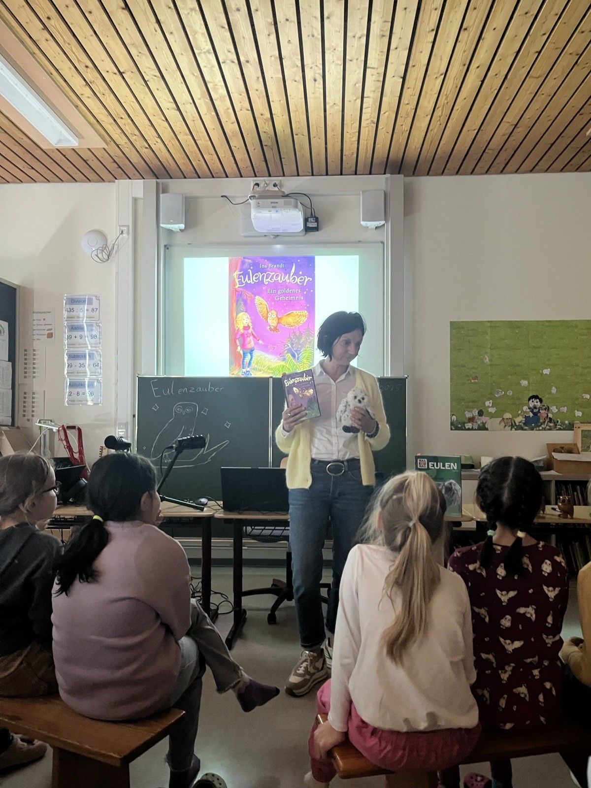 Am 03.04. besuchte die Kinderbuchautorin Ina Brandt die Josefschule. Sie las aus ihrem Buch "Eulenzauber - Ein goldenes Geheimnis" vor. Außerdem sprach sie mit den Kindern über Eulen und brachte dazu einiges an Material mit. Es wurden verschiedene Eulen sowie eine Feder gezeigt. Der Jahrgang 3 hörte interessiert zu und durfte sich zum Abschluss noch ein Autogramm abholen.